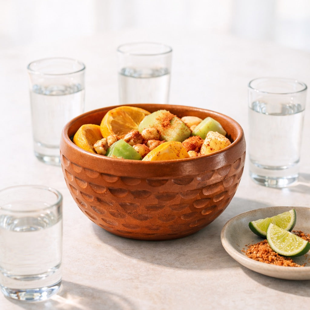 A beautifully hand-crafted clay bowl featuring a pineapple-like texture that celebrates nature and fine artisanal work. Whether displayed as a centerpiece, filled with fruit, or used for serving at your next gathering, it brings a warm, organic elegance to your table. Pair it with other clay bowls in our collection for a cohesive set.