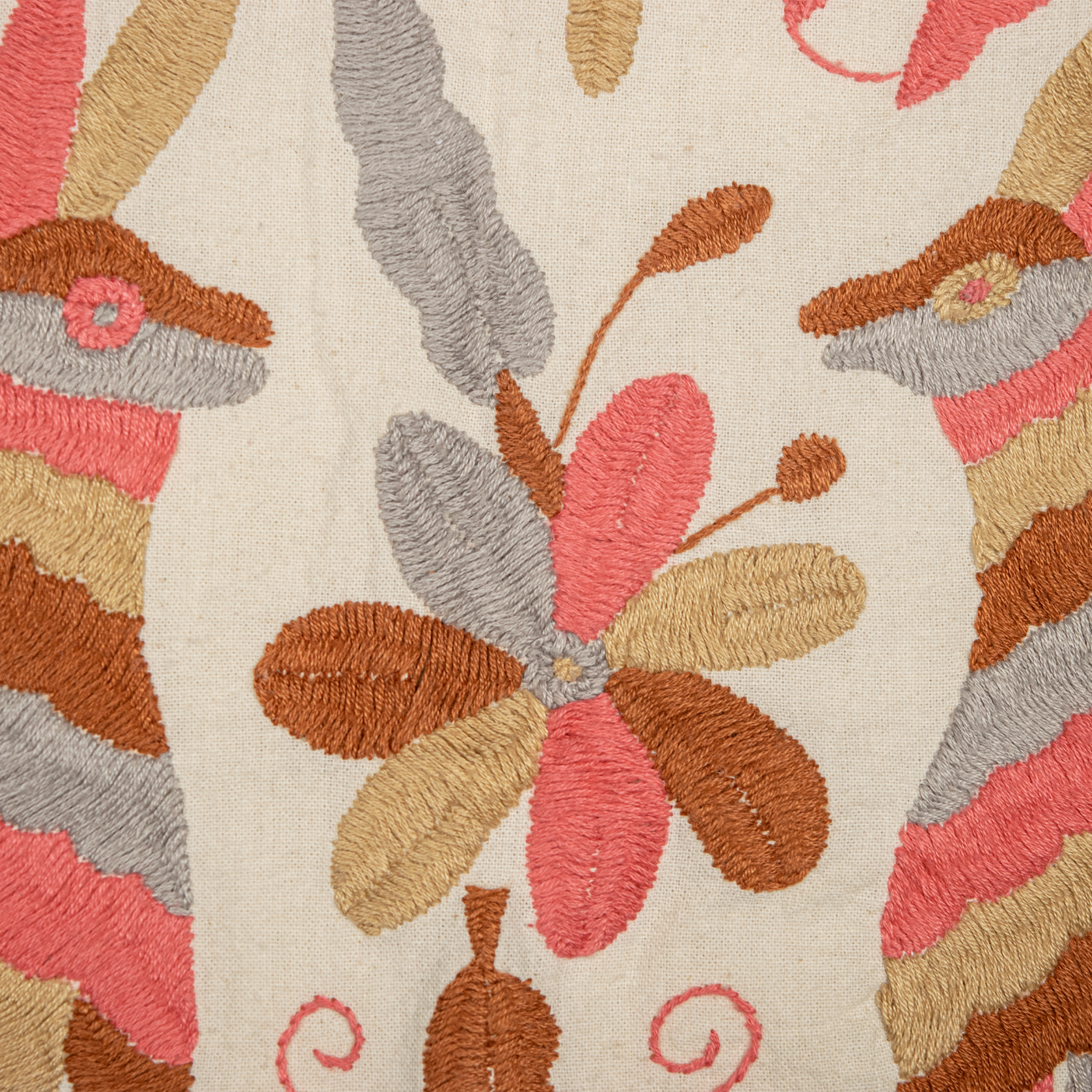 Elevate your space with this exquisite handwoven pillow, crafted 100% in Mexico by skilled artisans. The intricate embroidery showcases vibrant, nature-inspired motifs in warm, elegant tones, creating a luxurious piece that stands out as both décor and art.