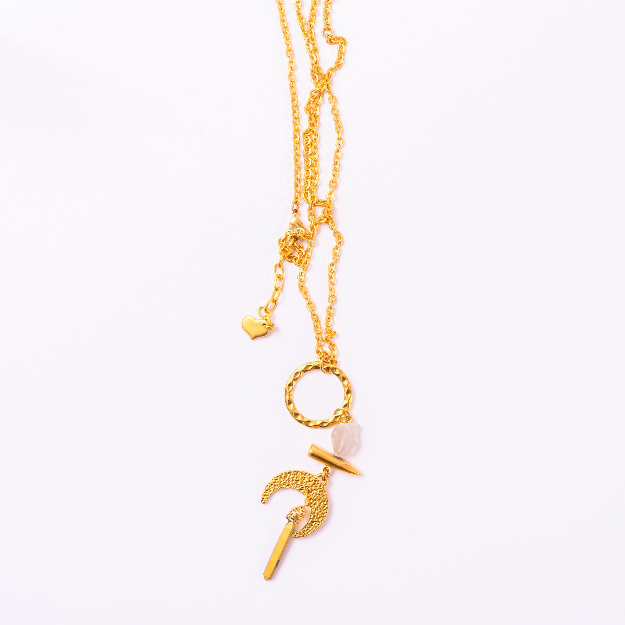 This long gold-plated necklace features handcrafted pendants designed to inspire and elevate any outfit. Bold and artisanal, it showcases the skill of Mexican jewelers and makes a striking statement whether worn or gifted.