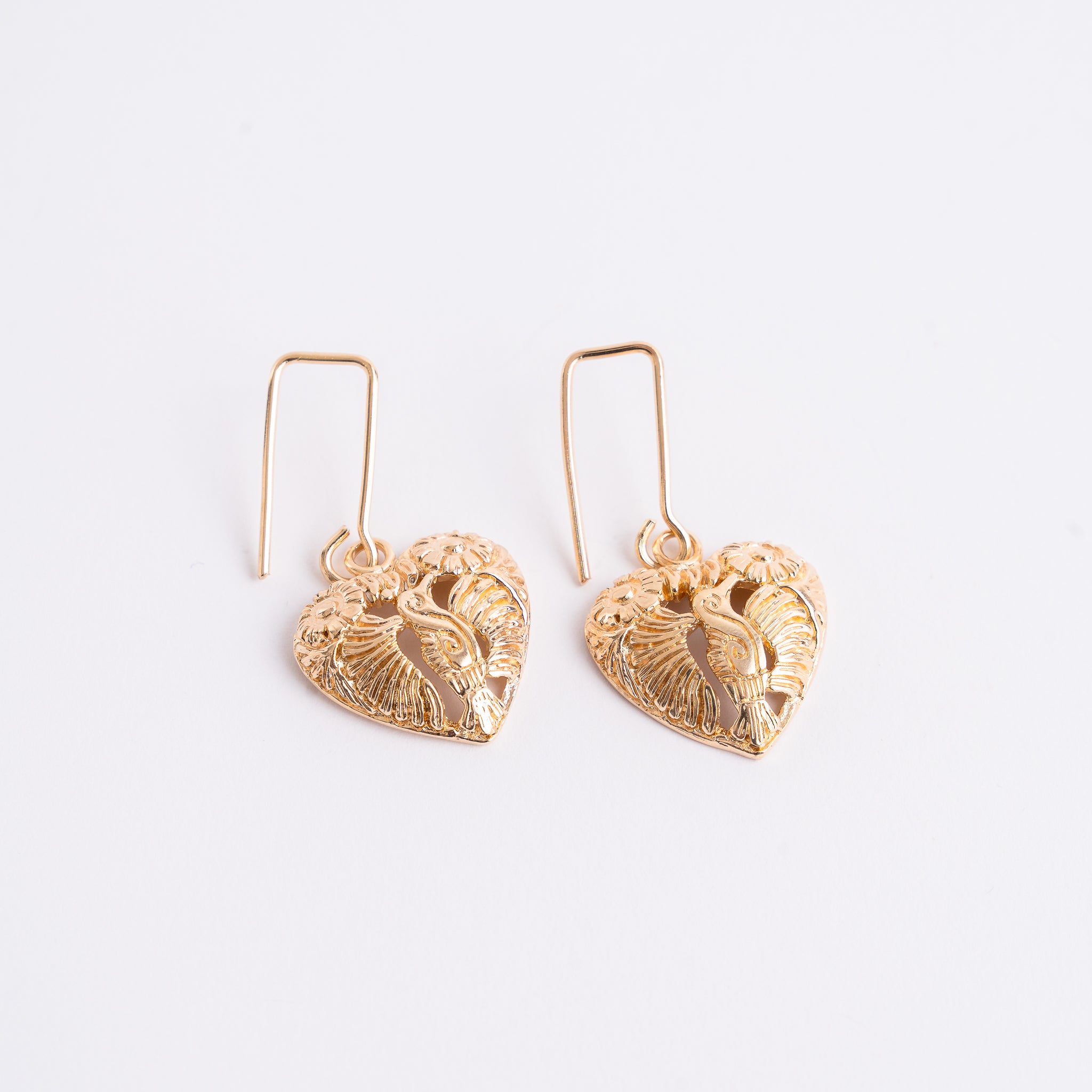 Beautifully carved heart earrings plated in gold, celebrating Mexican artisanship and cultural heritage. Lightweight and elegant, they are perfect for everyday wear or special occasions, bringing artisanal charm and refined style to any outfit.