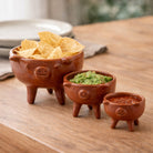 Add a playful, artisanal charm to your table with these pig-shaped bowls, a creative nod to the traditional molcajete. Handcrafted in natural clay by talented Mexican potters, each piece brings warmth and character to the way you serve sauces, dips, or condiments.