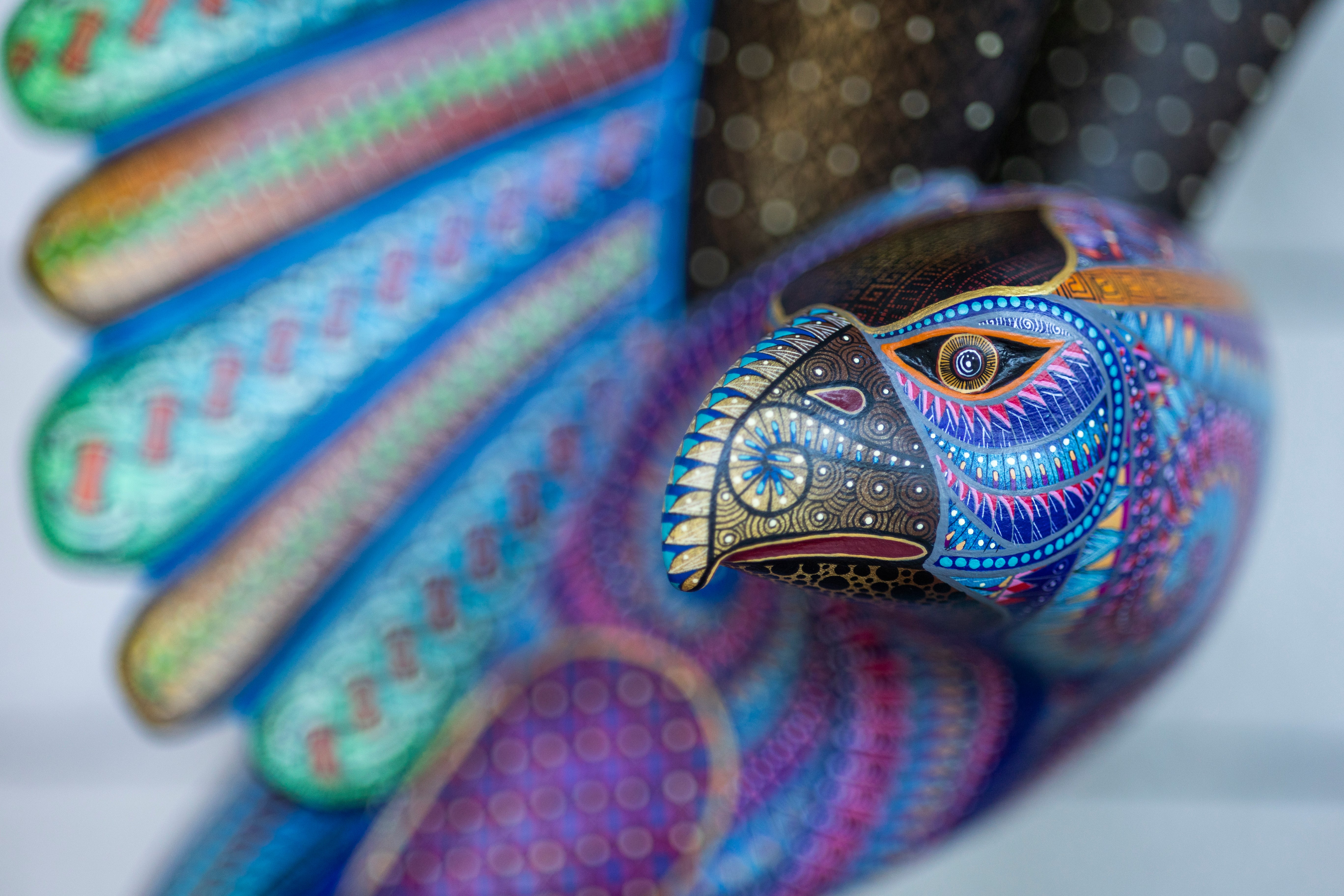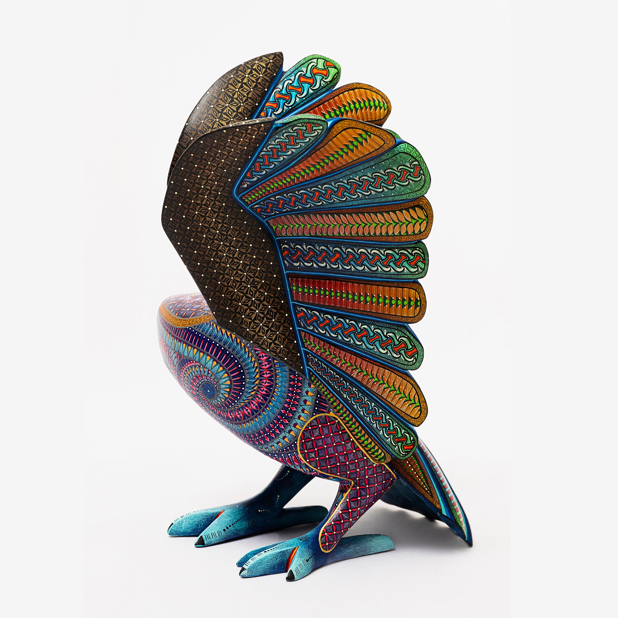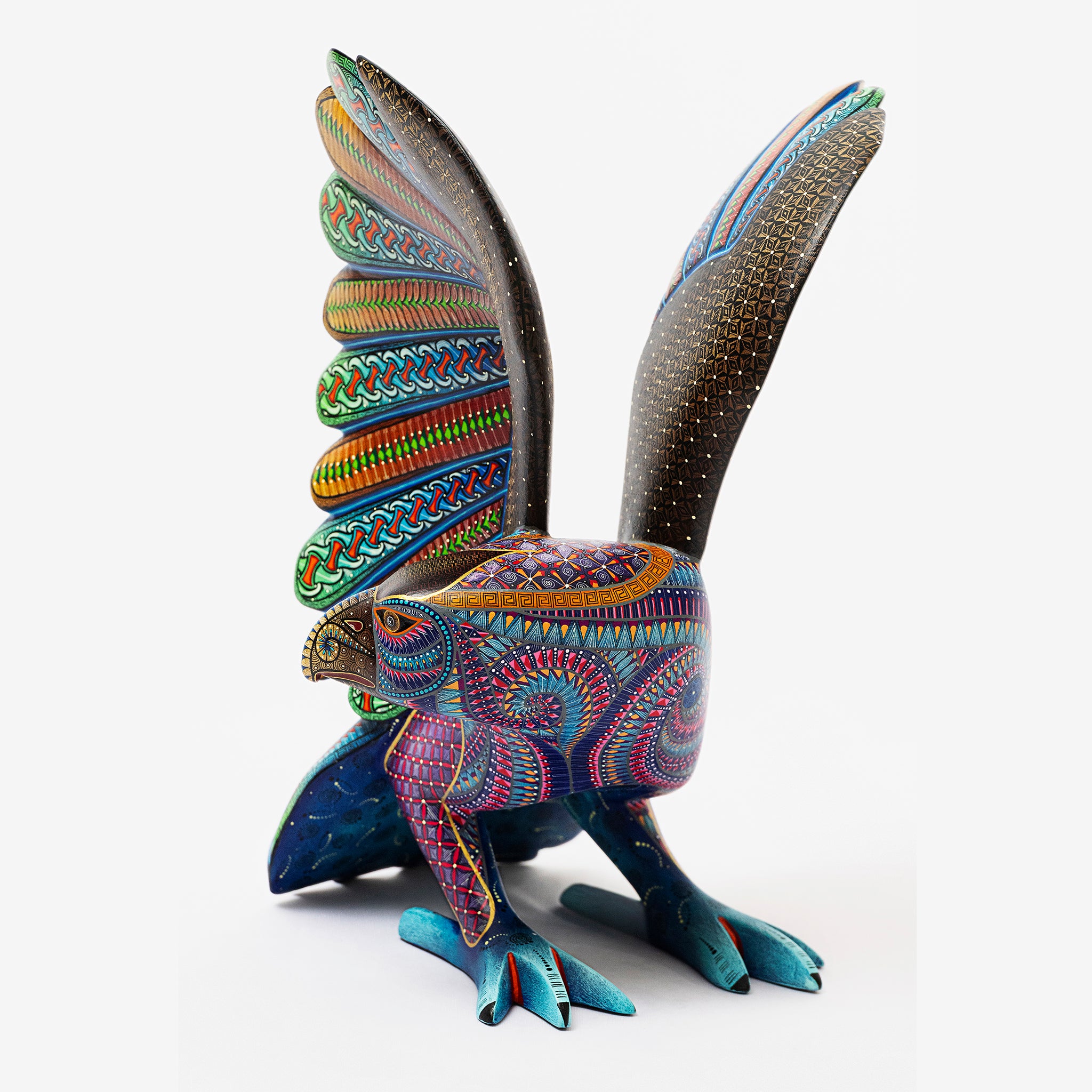 Hand-carved in Oaxaca and meticulously painted by skilled artisans, Águila Real captures the majestic spirit of Mexico’s iconic eagle. This striking alebrije showcases intricate Zapotec-inspired patterns in vibrant, iridescent hues, symbolizing strength, freedom, and cultural heritage. Each piece is one-of-a-kind, celebrating the craftsmanship and storytelling rooted in Mexican folk art.