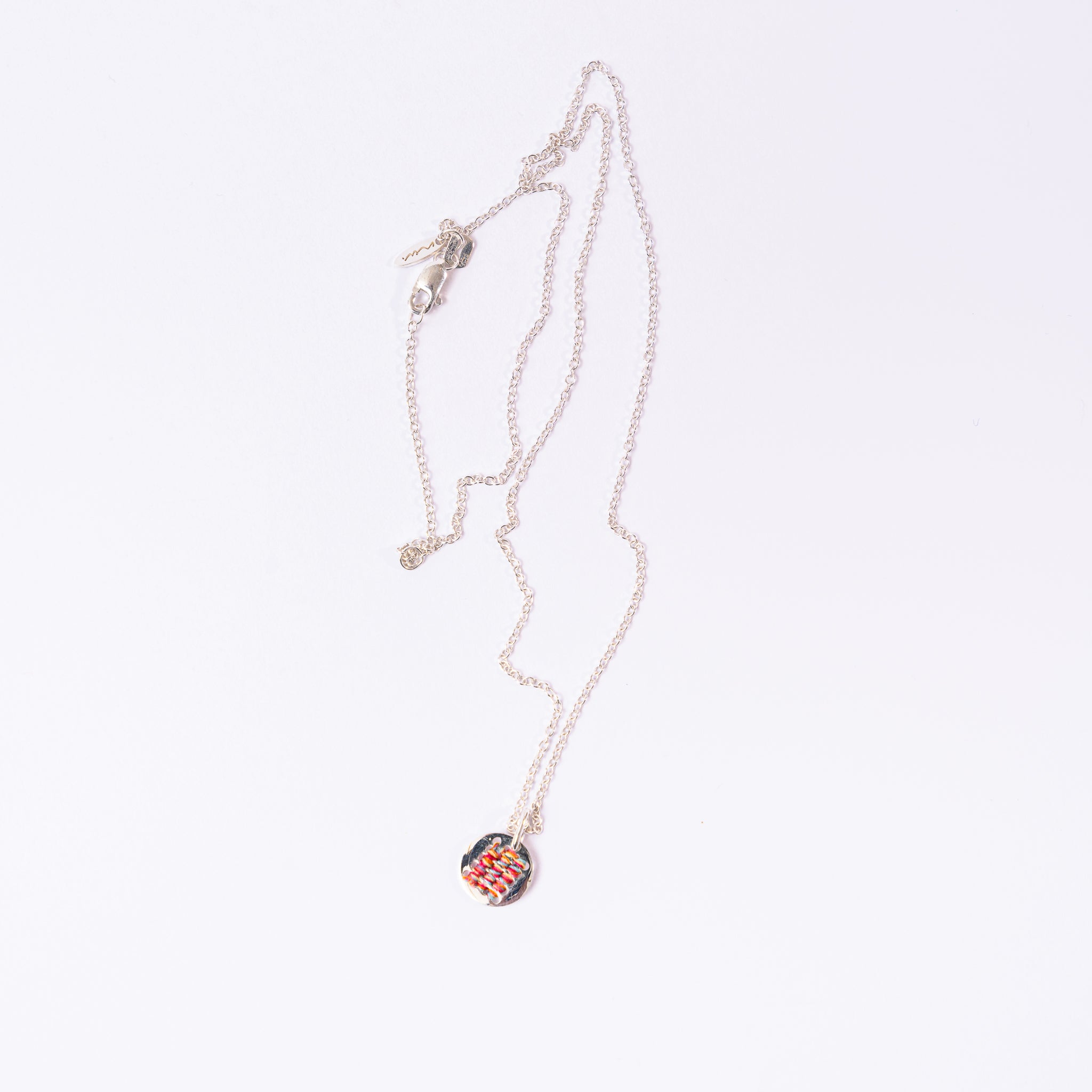 Crafted by talented Mexican artisans, this long chain features a silver pendant with a handwoven patch of colorful thread that makes it truly one of a kind. Elegant, versatile, and timeless, it's perfect for daily wear and a meaningful addition to any jewelry collection. Pair with the Balo Earrings for a cohesive look.
